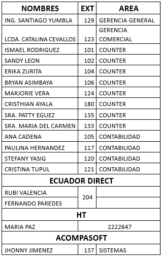 EXTENSIONES CALL CENTER